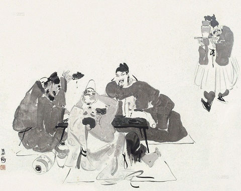 陶渊明过着宁静的乡居生活。这一天,他邀请友人松下坐饮。故人赏我趣,挈壶相与至。喝酒没有桌凳可凭,只好铺荆于地,宾主围坐。没有丝竹音乐,只能听风吹松叶,只能听父老杂乱言。此情此景,酒不醉人人自醉。