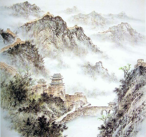 此刻,峰影如燃的西天,还沐浴在一派庄严肃穆的落日余霞中。回看北天,却又灰云蒙黎。透过如林插空的千百峰嶂,隐约可见有一片雨雪,纷扬在遥远的天底下,将起伏的山峦,织成茫茫一白。意兴盎然地转身西望,不禁又惊喜而呼:那在内蒙古准格尔旗一带的“渝林”古塞,竟远非人们所想像的那般遥远!从居庸塞望去,它不正“只隔”在云海茫茫中耸峙的“数蜂”之西么?