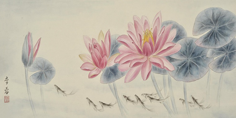 其次,紧承上句而来的第二句“莲叶何田田”,显然也是明写莲叶茂美,暗喻采莲姑娘们人数众多,姿态丰美的。而第三句“鱼戏莲叶间”和后四句“鱼戏莲叶东,鱼戏莲叶西,鱼戏莲叶南,鱼戏莲叶北”,则是以鱼儿戏水于莲叶间暗喻采莲男女调情求爱的欢乐情景。这也是民间情歌中常用的表现手法。由此可见,这首采莲歌实际上乃是一首与劳动相结合的情歌。