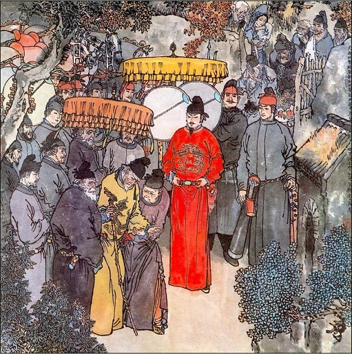 君臣相顾,泪湿衣衫,东望京都心伤悲,信马由缰归朝堂。