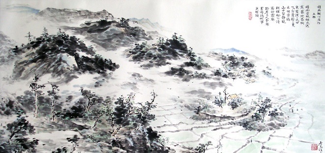 唐人李肇因见李嘉祐集中有“水田飞白鹭,夏木啭黄鹂”的诗句,便讥笑王维“好取人文章嘉句”(《国史补》卷上);明人胡应麟力辟其说:“摩诘盛唐,嘉祐中唐,安得前人预偷来者?此正嘉祐用摩诘诗。”(《诗薮·内编》卷五)按,嘉祐与摩诘同时而稍晚,谁袭用谁的诗句,这很难说;然而,从艺术上看,两人诗句还是有高下的。宋人叶梦得认为王维添加的两个叠词使诗句更加精彩。“漠漠”有广阔意,“阴阴”有幽深意,“漠漠水田”“阴阴夏木”比之“水田”和“夏木”,画面就显得开阔而深邃,富有境界感,渲染了积雨天气空蒙迷茫的色调和气氛。
