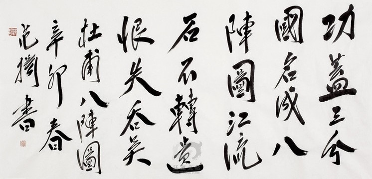 头两句诗在写法上用的是对仗句,“三分国”对“八阵图”,以全局性的业绩对军事上的贡献,显得精巧工整,自然妥帖。在结构上,前句劈头提起,开门见山;后句点出诗题,进一步赞颂功绩,同时又为下面凭吊遗迹作了铺垫。