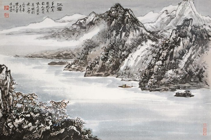 孤舟蓑笠翁,独钓寒江雪。出自唐代诗人柳宗元作品《江雪》。该山水诗,描述了一幅江乡雪景图。山山是雪,路路皆白。飞鸟绝迹,人踪湮没。遐景苍茫,迩景孤冷。意境幽僻,情调凄寂。渔翁形象,精雕细琢,清晰明朗,完整突出。诗采用入声韵,韵促味永,刚劲有力。历代诗人无不交口称绝。千古丹青妙手,也争相以此为题,绘出不少动人的江天雪景图。