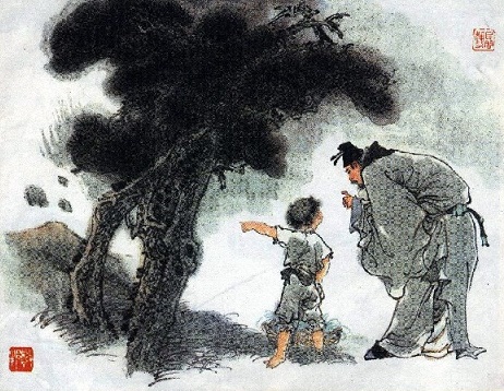 苍松下,我询问了年少的学童;他说,师傅已经采药去了山中。