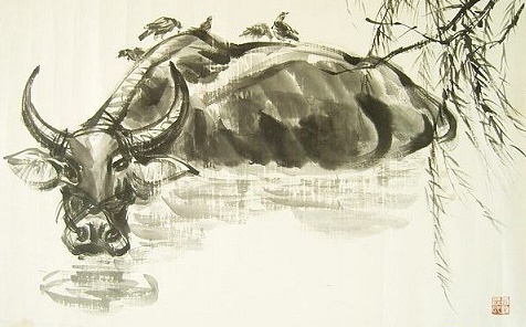 夕阳牛背无人卧,带得寒鸦两两归。出自北宋诗人张舜民创作的一首七言绝句《村居》。一、二两句主要描写绿水、田地、翠竹、屋篱、榆树、槿花等静景,三、四两句主要描写了行步迟迟的老牛,悄立牛背的寒鸦等动景,前后动静结合,烘托出了宁静平和的氛围,整首诗表达了诗人悠闲宁静而又略带清愁的心境。