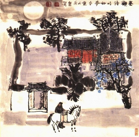 接下两句,写梦醒之后的所见所感。一人在外,当然免不了乡思人梦,而且看来词人还是做了一个好梦,所以从梦中惊醒之后,他觉得那份美好的幻想,被残酷的现实给击破了。回到现实之中的词人所看到的,是如豆的油灯,饥饿的老鼠。 “鼠窥灯”的意象,既写环境之静,又写出了环境的寒凉冷清:惯于隐藏在暗处的饥鼠,竟至大胆地窥视起油灯来,可见已经是好久没有任何人声动静了。沉沉如水的夜幕之中,一点如星的灯火,是那么的飘忽不定。以一点暖色调,反衬整个环境的冷色调,冷暖对比,使整个环境更显清冷寒凉,“霜送晓寒侵被”,既可以说是梦破之后的词人,切身所感,也可以说是他看到这样一组景象之后,心生的凉意。