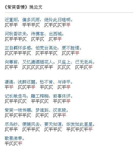 作品简介《紫萸香慢·近重阳偏多风雨》是宋末词人姚云文的词作。此词紧扣重阳节之习俗,描绘物是人非萧索凄凉的景象,抒发了遗民不忘故国的忆旧情怀。上阕叙写樽前怀友之情,下阕抒发忆昔伤今之慨。全词从重阳入笔,语言平实,又不失跌宕起伏,整首词从出游始,于登高处终,章法浑成,意蕴丰厚,读来凄怆感人。