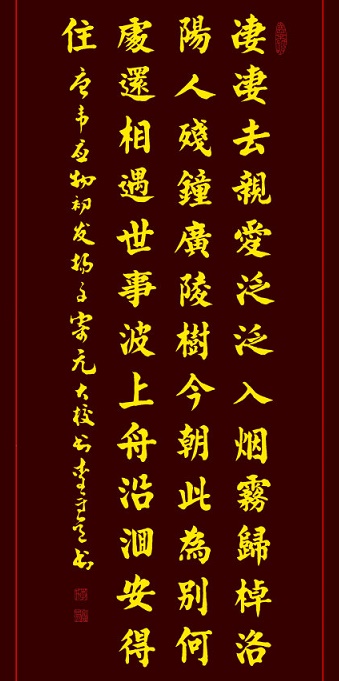 正在这时,诗人忽然听到广陵寺庙里的钟声,从朦胧的烟树中隐隐传来,他的心情更觉难过。“归棹洛阳人,残钟广陵树”体现出诗人和元大分手,心情很悲伤。其中“残钟”写声,“广陵树”写行,钟声越来越细,树影越来越小,诗人离广陵、离友人越来越远了,友人留在钟声袅袅的烟树背后。世人的离别之情背景物全然引出。“残钟广陵树”五个字能够表现出诗人与元大离情别绪的特殊感情,是和上文一路逼拢过来的诗情分不开的。这便是客观的形象受到感情的色彩照射后产生的特殊效果。