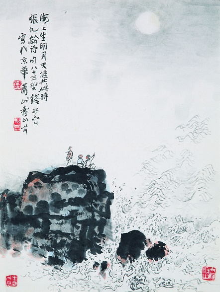 《望月怀远》是一首月夜怀念远人的诗,是作者在离乡时,望月而思念远方亲人而写的。起句“海上生明月”意境雄浑阔大,是千古佳句。它和谢灵运的“池塘生春草”、“明月照积雪”,谢朓的“大江流日夜”以及作者自己的“孤鸿海上来”等名句一样,看起来平淡无奇,没有一个奇特的字眼,没有一分点染的色彩,脱口而出,却自然具有一种高华浑融的气象。这一句完全是景,点明题中的“望月”。第二句“天涯共此时”,即由景入情,转入“怀远”。前乎此的有谢庄《月赋》中的“隔千里兮共明月”,后乎此的有苏轼《水调歌头·明月几时有》词中的“但愿人长久,千里共婵娟”,都是写月的名句,其旨意也大抵相同,但由于各人以不同的表现方法,表现在不同的体裁中,谢庄是赋,苏轼是词,张九龄是诗,相体裁衣,各极其妙。这两句把诗题的情景,一起就全部收摄,却又毫不费力,仍是张九龄作古诗时浑成自然的风格。