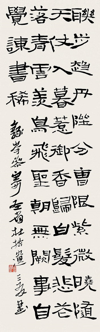 五、六两句,诗人直抒胸臆,向老朋友吐露内心的悲愤。“白发悲花落,青云羡鸟飞。”这两句中,“悲”字是中心,一个字概括了诗人对朝官生活的态度和感受。诗人为大好年华浪费于“朝随天仗入,暮惹御香归”的无聊生活而悲,也为那种“联步趋丹陛,分曹限紫微”的木偶般的境遇而不胜愁闷。因此,低头见庭院落花而倍感神伤,抬头睹高空飞鸟而顿生羡慕。如果联系当时安史乱后国家疮痍满目、百废待兴的时事背景,对照上面四句所描写的死气沉沉、无所作为的朝廷现状,读者就会更加清楚地感到“白发悲花落,青云羡鸟飞”两句,语愤情悲,抒发了诗人对时事和身世的无限感慨。
