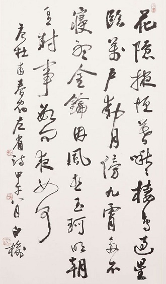 “星临万户动,月傍九霄多。”此联由暮至夜,写夜中之景。前句说在夜空群星的照耀下,宫殿中的千门万户也似乎在闪动;后句说宫殿高入云霄,靠近月亮,仿佛照到的月光也特别多。这两句是写得很精彩的警句,对仗工整妥帖,描绘生动传神,不仅把星月映照下宫殿巍峨清丽的夜景活画出来了,并且寓含着帝居高远的颂圣味道,虚实结合,形神兼备,语意含蓄双关。其中“动”字和“多”字用得极好,被前人称为“句眼”,此联因之境界全出。这两句既写景,又含情,在结构上是由写景到写情的过渡。