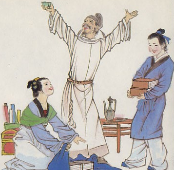 回头看妻儿的愁云顿时消散,随便地收拾起诗书欣喜若狂。