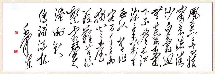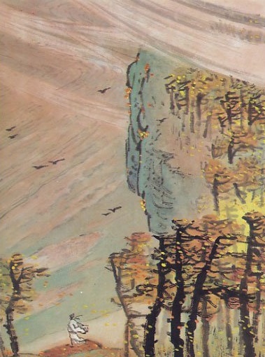 颔联集中表现了夔州秋天的典型特征。诗人仰望茫无边际、萧萧而下的木叶,俯视奔流不息、滚滚而来的江水,在写景的同时,便深沉地抒发了自己的情怀。“无边”“不尽”,使“萧萧”“滚滚”更加形象化,不仅使人联想到落木窸窣之声,长江汹涌之状,也无形中传达出韶光易逝,壮志难酬的感怆。透过沉郁悲凉的对句,显示出神入化之笔力,确有“建瓴走坂”、“百川东注”的磅礴气势。前人把它誉为“古今独步”的“句中化境”,是有道理的。