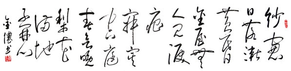 为了增强画面效果,深化诗篇意境,诗人还采取了重叠渲染、反复勾勒的手法。诗中,写了日落,又写黄昏,使暮色加倍昏暗;写了春晚,又写落花满地,使春色扫地无余;写了金屋无人,又写庭院空寂,更写重门深掩,把诗中人无依无伴、与世隔绝的悲惨处境写到无以复加的地步。这些都是加重分量的写法,使为托出宫人的怨情而着意刻画的那样一个凄凉寂寞的境界得到最充分的表现。