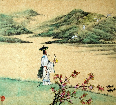 作者是一位山水画家,据说他曾将《渔歌子》画成图画。确实,这首词是富于画意的。苍岩,白鹭,鲜艳的桃林,清澈的流水,黄褐色的鳜鱼,青色的斗笠,绿色的蓑衣,色彩鲜明,构思巧妙,意境优美,使读者仿佛是在看一幅出色的水乡春汛图。