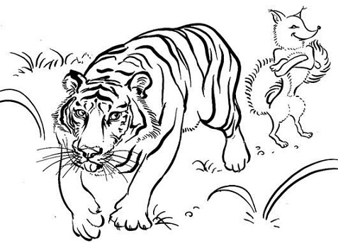 Tiger and food for the beasts,fox.The fox said:'son,how dare you eat me!Godmade melong beasts.I eat this child,you are against God's command!If you do not believe,my first child,afteralong with me,the concept of beasts to seeme and dare notgo?'The tiger is so,therefore then andtrip.The beast sees,allgo.The tiger did not knowalso beastly fear oneself walks,thinks the fear fox.