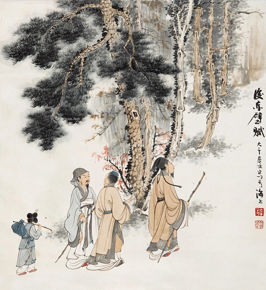 然而自由的心态不易获得,它受到外境内情的各种制约。缺乏境界相同而相得的朋友,缺乏令感觉滋润的美景,缺乏内在情怀的畅通无阻——或者说因为前缘、因为思考所必经,内在的情绪节奏刚好处在一个低点,都不能使创作完成于松弛自由的心态之中。与自由松弛相对应的是紧张,全然的紧张根本不能使人创作出完整的作品,而部分的紧张则无碍。后赋就完成在部分的紧张这一创作心态之下。所以它的整体情思是含蓄的、内倾的,在结局处也没有打开,没有表现出前赋那样如波涛般起伏的情思节奏。对文赋这种文体来说它不免属于异数。这种紧张的心态不仅在内情上显现,也在它的外境上显现。“断岸千尺”所喻示的自然的挤压感,“山高月小,水落石出”形成的瘦硬与紧张感,孤鹤横江、掠舟而过形成的意象突兀感,别借一道士以完成主客问答所造成的断裂感,将道士梦影与孤鹤对接所造成的着意感,以及明知是与道士梦中问答、醒后却要“开户视之,不见其处”的勉强感,都说明了作者作此赋时心态不够自然而处于某种紧张状态。当然,比较紧张的心态虽造成了其情思表达的不够跌宕自如,且露出着意安排的痕迹,但它在审美经验上却别造一境,使散文具有了抒情诗意味深长的效果。