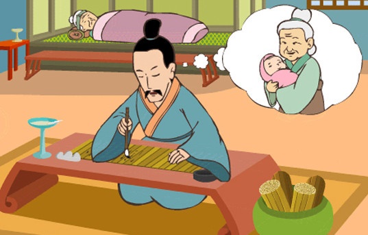 臣密言:臣以险衅,夙遭闵凶。生孩六月,慈父见背;行年四岁,舅夺母志。祖母刘悯臣孤弱,躬亲抚养。臣少多疾病,九岁不行,零丁孤苦,至于成立。既无伯叔,终鲜兄弟,门衰祚薄,晚有儿息。外无期功强近之亲,内无应门五尺之僮,茕茕孑立,形影相吊。而刘夙婴疾病,常在床蓐,臣侍汤药,未曾废离。(闵 通:悯 茕茕孑立 一作:独立)